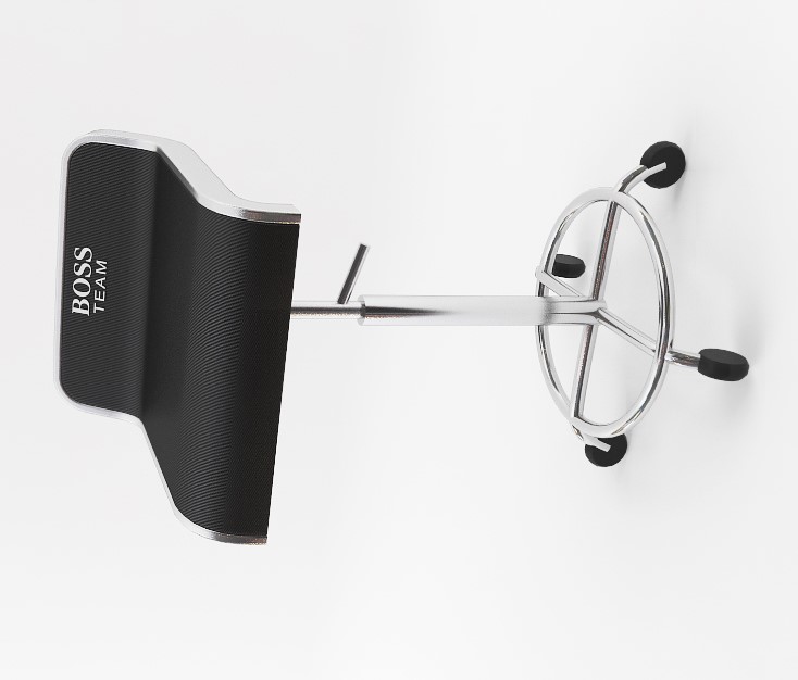 Les images 3D présentent une série de concepts de stands et de boutiques dédiés à la marque HUGO BOSS. Les structures intègrent des éléments lumineux et des affichages visuels percutants mettant en avant les produits phares de la marque.