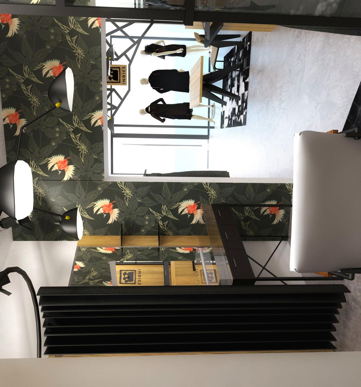 INDiES présente une esthétique moderne et minimaliste avec une palette de couleurs neutres et des motifs floraux. L’éclairage subtil et le mobilier épuré renforcent l’atmosphère chic et accessible.